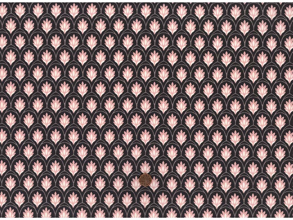 Beschichtete Baumwolle Blume schwarz Reststück 0,50 x 1,50m
